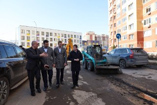 Глава округа проверил ход работ у дома 27 на улице Молодёжной.